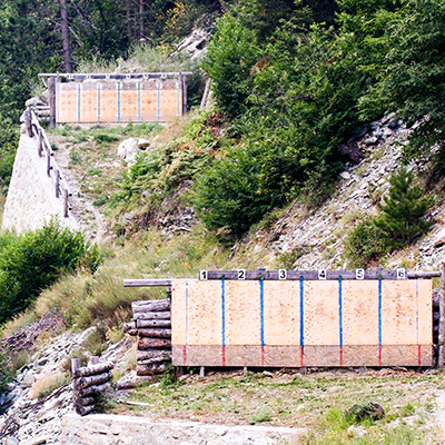 Sono presenti 6 linee di tiro, i bersagli sono distanti 100 m, 200 m, 300 m.